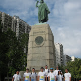 Numa manhã com céu encoberto, que com o passar do tempo mudou para ensolarada, nossas Vênus se encontraram nos pilotis do MAM para mais uma pati-corrida: Aldina, Luiza, Janaína (minha irmã), Priscila (minha prima), Rosane, Simone, Soraia, a irmã do Lino e mais a Vênus Pipoca (Carla Cris). Tudo azul, com quase 6000 mulheres vestidinhas de azul, achar nossas Vênus na pista foi um exercício visual nem sempre com final feliz. Gustavo só viu a Rosane chegando quando ela já estava quase dentro da objetiva, eu só vi Luiza quase uma hora depois da chegada, sorte que havia testemunhas da chegada dela, o que evitou que eu fosse procurá-la no caminho dos 10km ou no posto médico.Grupo reunido novamente, só faltava a Luiza para a foto oficial, que eu já havia procurado umas três vezes no meio daquela horda de Smurfetes. Depois de muitas dicas (anunciar no microfone, procurar no posto médico, etc), finalmente aparece a Lôra, lépida e fagueira... tinha parado no stand das massagens.